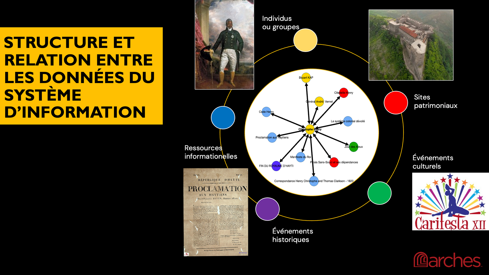 Le système d’information est une plateforme relationnelle composée d’un site web et d’une base de données. Il met en valeur, protège et transmet le patrimoine culturel haïtien. Il favorise la diffusion de connaissances et la collaboration entre les organismes publics, les universités, les chercheurs, les organisations dédiées à la protection du patrimoine et le public. De cette manière, il renforce les partenariats existants et inspire la réalisation d’initiatives et de projets conjoints au service de la mémoire collective.
