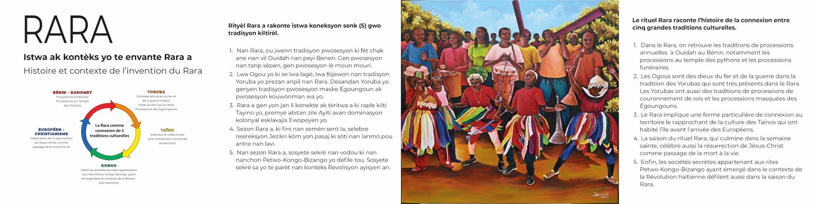Peintures, sculptures, photos et créations contemporaines inspirées du Rara. Une célébration artistique de cette tradition populaire transformée en langage visuel puissant.